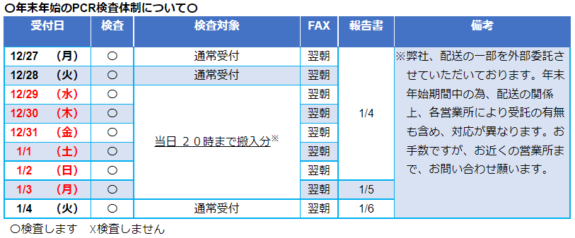 〇年末年始のPCR検査体制について〇 |