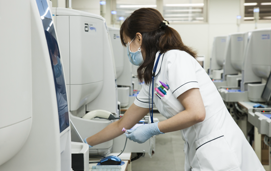 一般検査から迅速検査、そして特殊検査まで多様なニーズに応える体制を構築し、多くの医療機関から厚い信頼をいただいております。その基盤となるのは総合ラボの増床や緊急ラボの併設による強固な受託検査体制です。